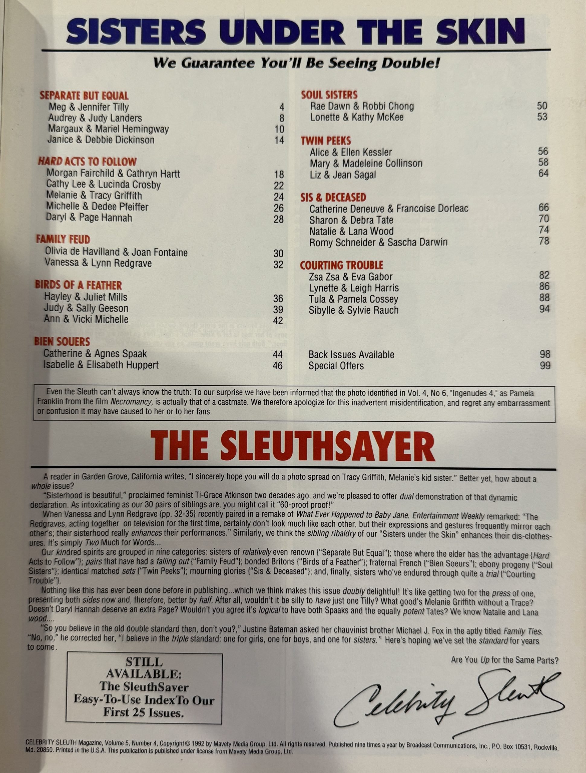 Celebrity Sleuth 5/4 1992 *Michelle & Dedee Pfeiffer*