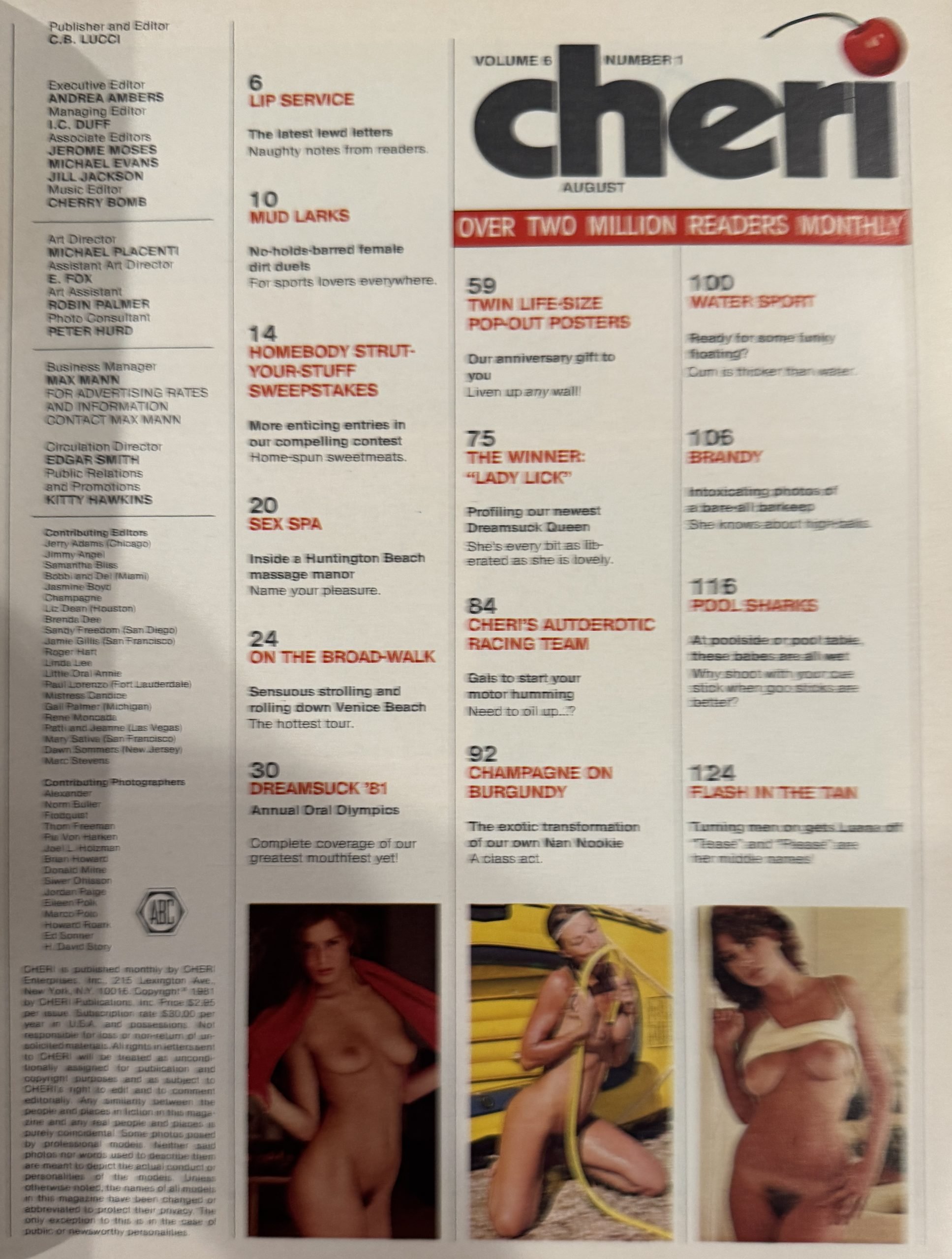 Cheri August 1981 Special Anniversary Issue -FREE Twin Life Size Poster Pop Out, Never Removed-